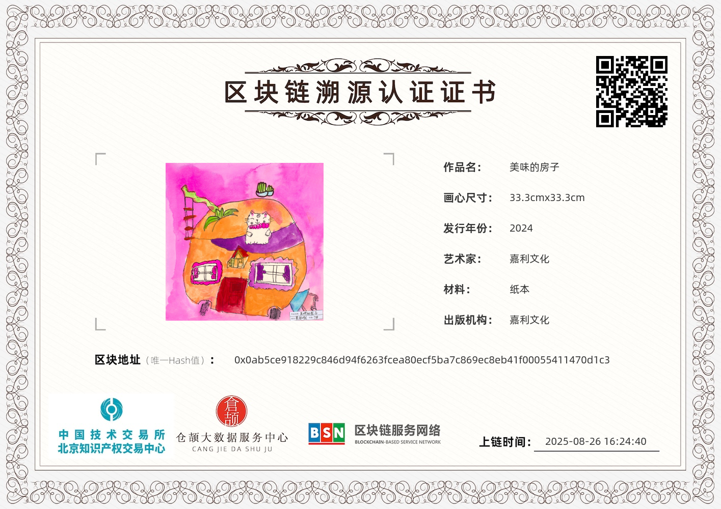 董郝唯7 岁 《 美味的房子》以西红柿为原型,画了一个美味的房子。