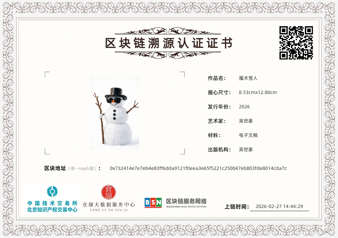 以 “冬日酷感” 为核心创意,将经典雪人形象与魔术师的酷飒风格结合,塑造出开朗阳光、自带舞台气场的 “魔术雪人” 形象,传递出冬日里的活力与惊喜感。 整体采用经典的三段式雪人体态,搭配黑色礼帽与墨镜,将 “魔术” 的神秘感与 “雪人” 的冬日感巧妙融合;手持树枝手杖的造型,强化了其魔术师的身份,而开朗阳光的性格设定,又让这个酷飒雪人充满亲和力,造型上既经典又极具反差感,视觉辨识度极高。