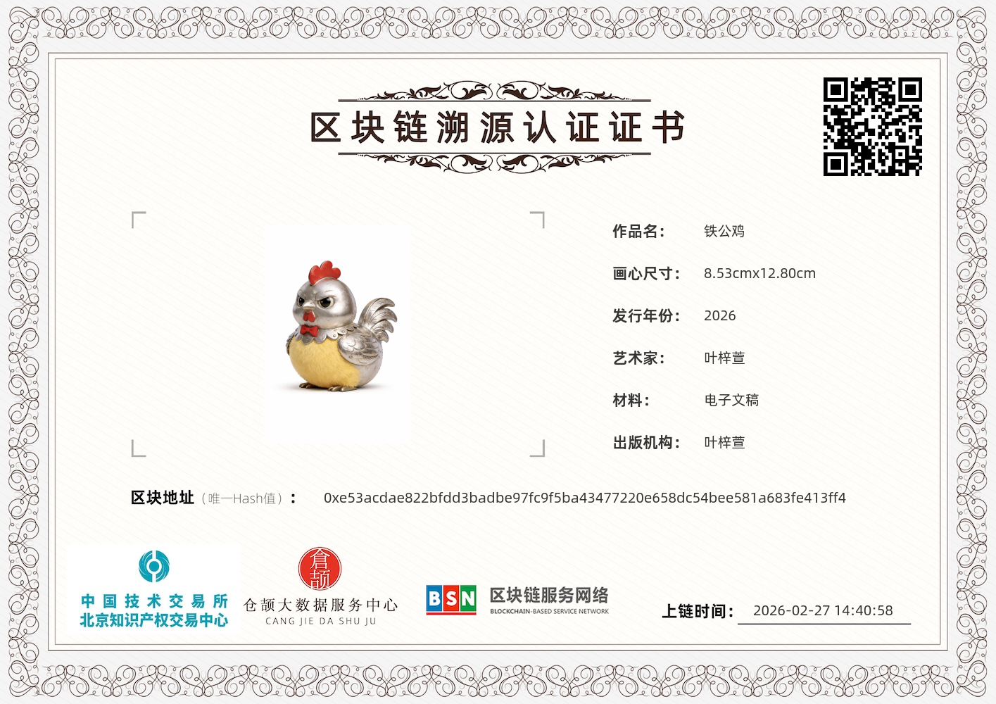以经典 “铁公鸡” 的民间俗语为创意核心,将 “一毛不拔、爱财如命” 的性格特质与拟人化的公鸡形象结合,塑造出一个既吝啬又带点小倔强的趣味角色,传递出幽默、市井又充满生活气息的 IP 内核。 整体采用金属质感的银色羽毛与亮黄色腹部,鸡冠鲜红,造型上保留了公鸡的经典形态,同时通过拟人化的神态和微表情,生动诠释出 “爱财” 与 “倔强” 的性格特征;身形比例卡通化,线条圆润可爱,让 “铁公鸡” 的形象既贴合俗语本意,又不失萌趣与亲和力,视觉辨识度极高。