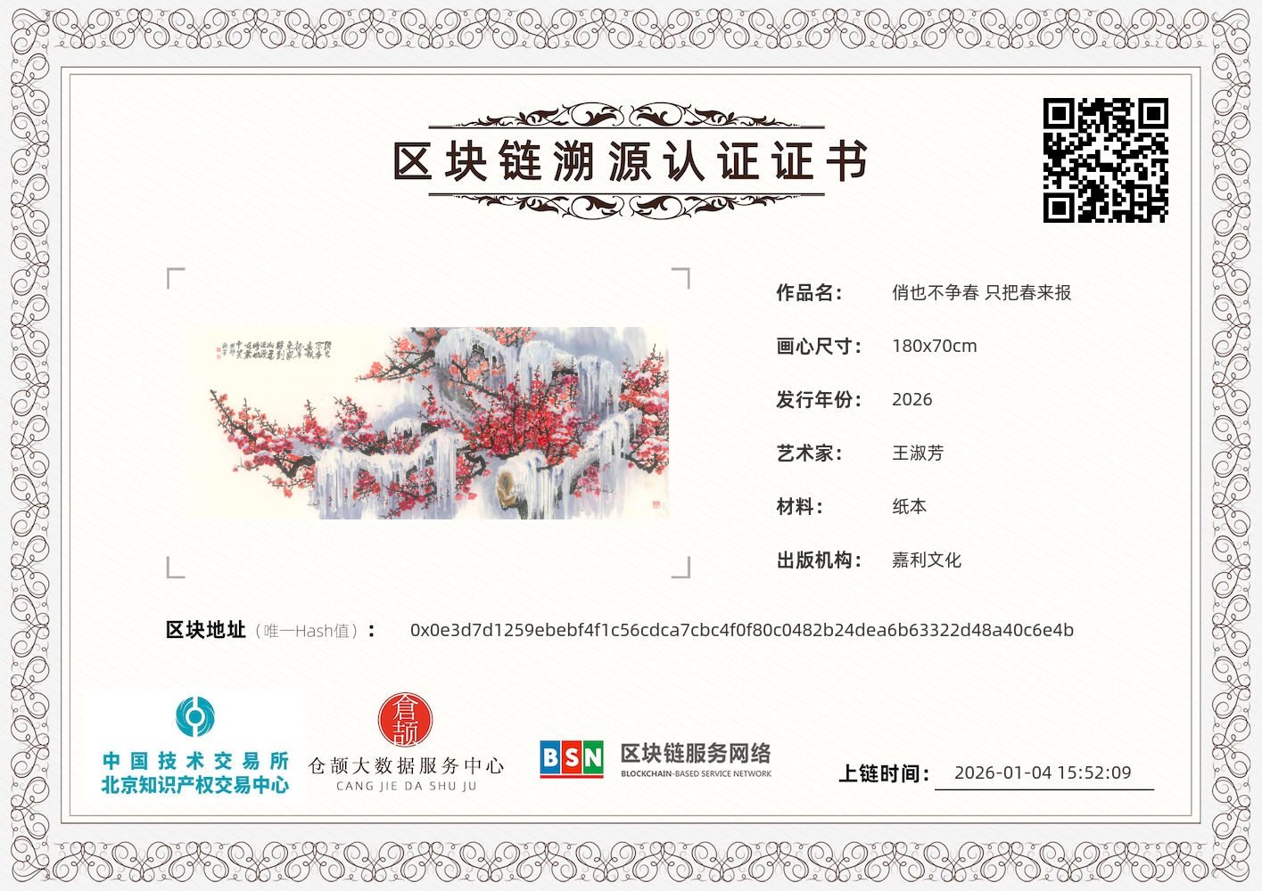 王淑芳 俏也不争春 只把春来报 180x70cm 2026 1.4