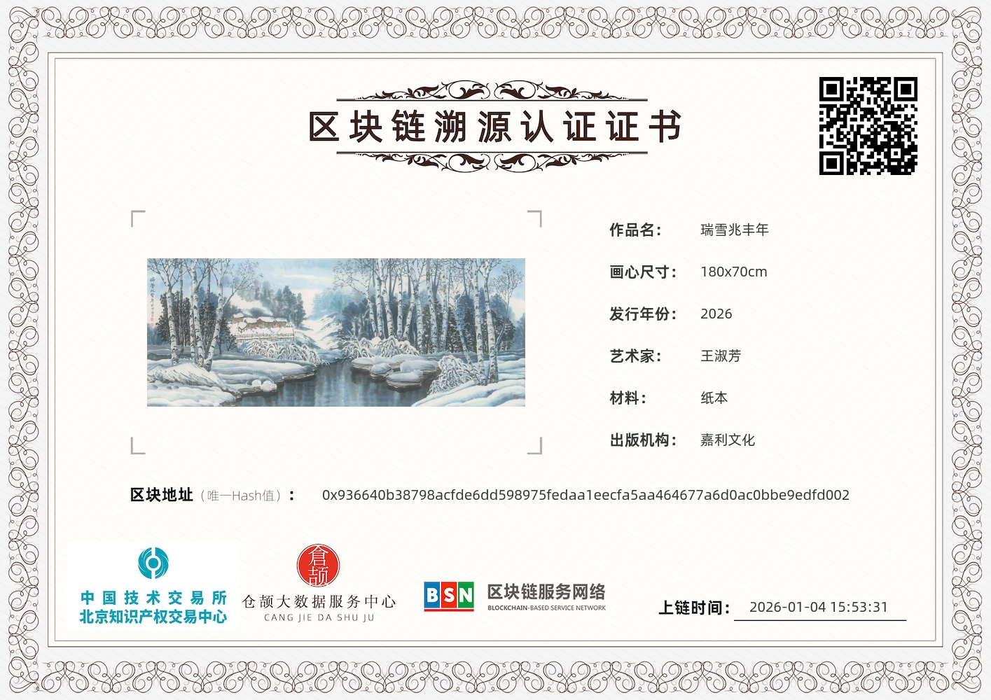 王淑芳 瑞雪兆丰年 180x70cm 2026 1.4