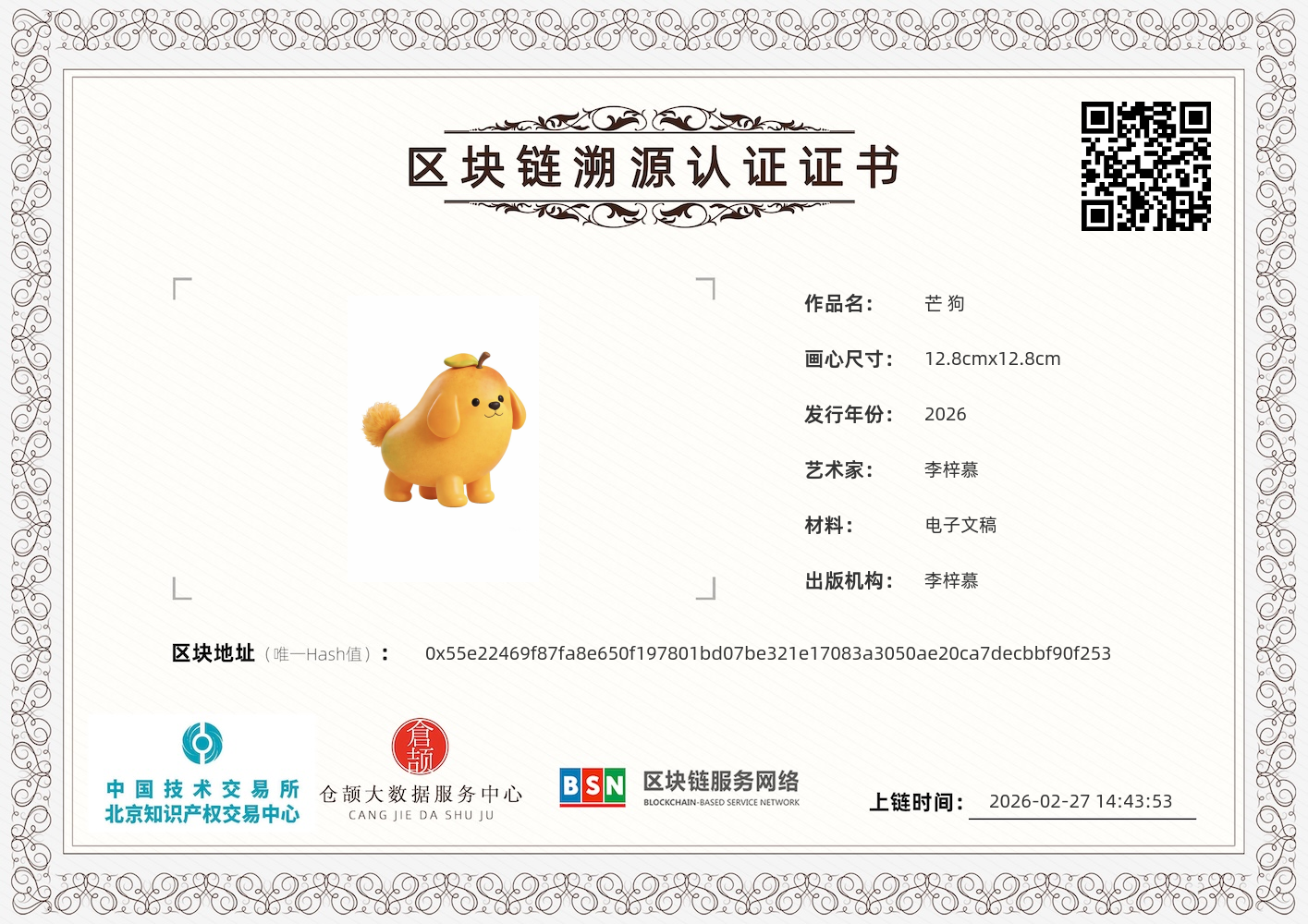 以芒果与小狗为创意核心的治愈系萌宠 IP,融合水果的清新质感与萌犬的灵动活泼,塑造出开朗软萌、自带 “芒狗” 谐音梗的趣味形象,传递出轻松治愈、元气满满的核心气质。 整体采用暖黄渐变的圆润身形,模拟芒果果肉的饱满质感,头顶点缀鲜绿果蒂与小叶片,强化水果辨识度;搭配灵动的小狗五官与蓬松尾巴,线条柔和饱满,呆萌可爱的神态与 “汪” 的口头禅呼应,视觉上清新治愈,记忆点十足。