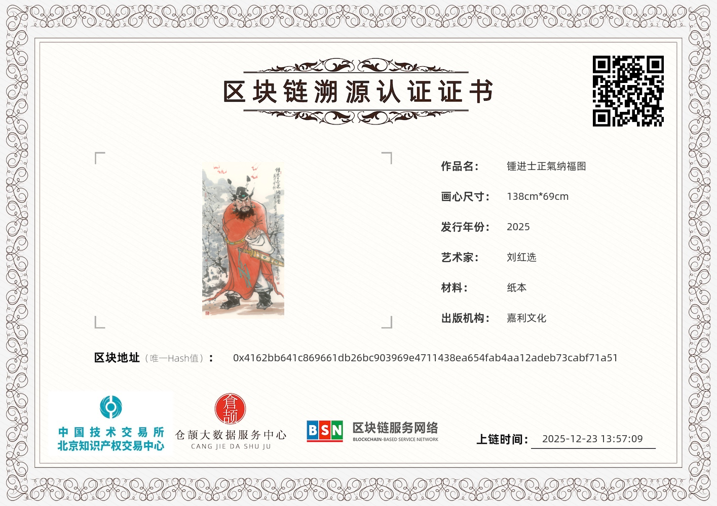 锺进士正氣纳福图 138x69cm 2025 12.22