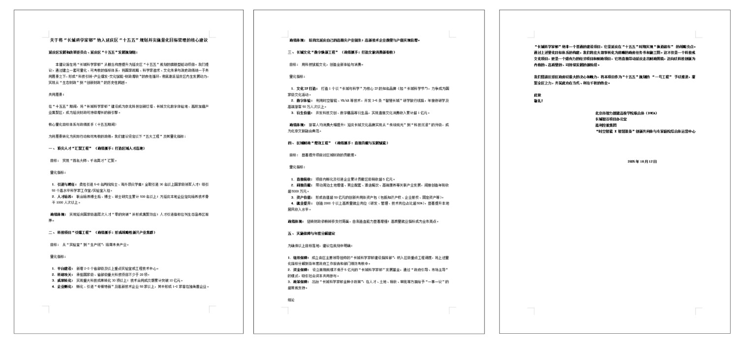 作品名称:《长城科学家邨纳入十五五规划并管理的建议》